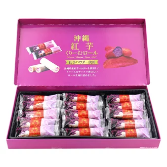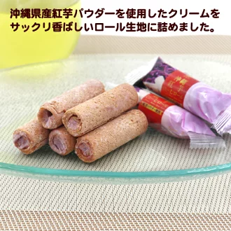 沖縄県産紅芋パウダーを使用したクリームをサックリ香ばしいロール生地に詰めました。