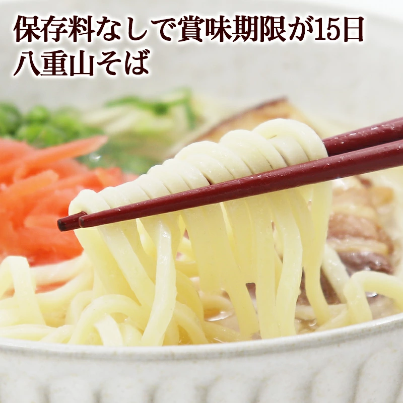 保存料なしで賞味期限が15日もある八重山そばの麺。 沖縄そばで有名な「サン食品」の麺。 自宅で本場の沖縄味をお召し上がりいただけます。 八重山そばは、細めの丸麺が特長です。 麺だけの商品ですので、沖縄そばだしをご用意してください。 一緒にソーキや三枚肉、かまぼこ、ネギなどをトッピングするとさらに美味しくいただけます。
